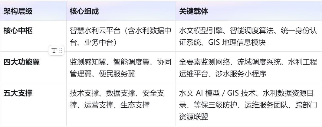二、总体架构:“一核四翼五支撑”,构建智慧水利生态