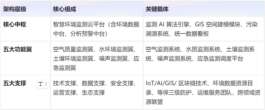 二、总体架构:“一核五翼五支撑”,构建智慧监测生态