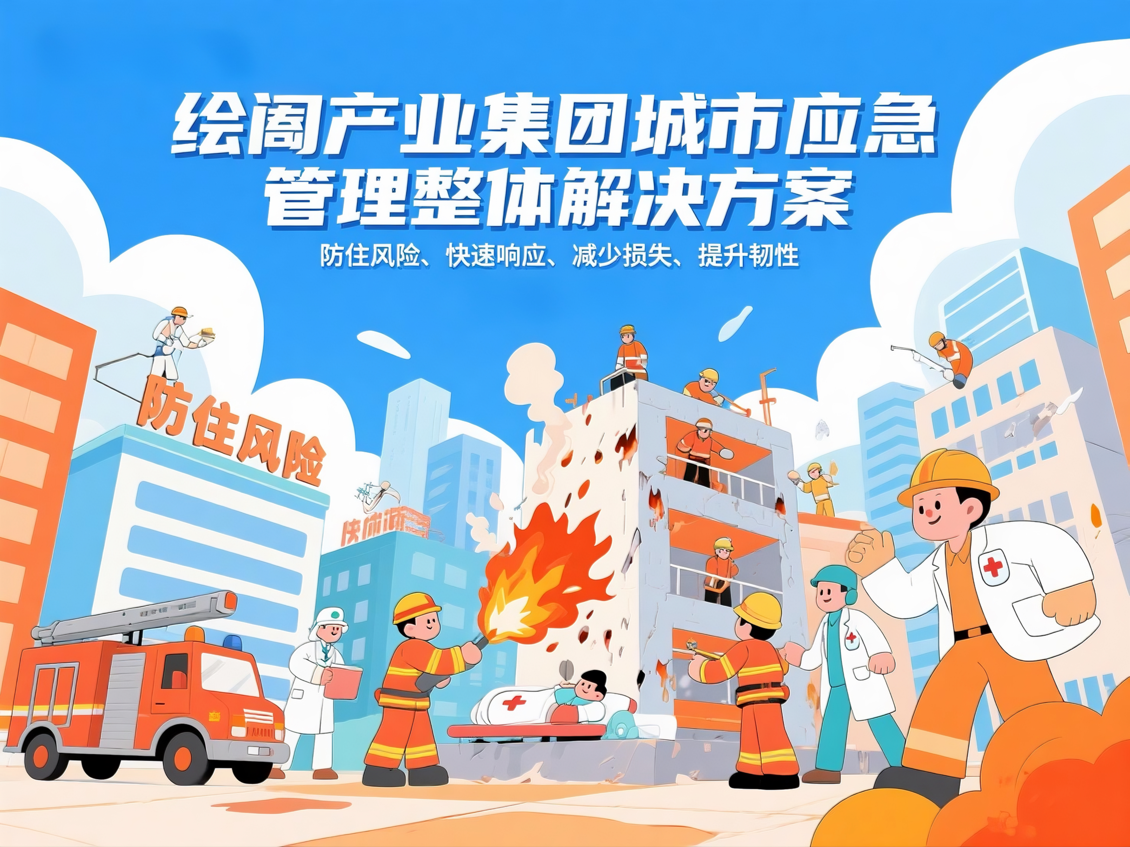 绘阖产业集团依托 “跨区域数据协同能力 + 智慧平台技术 + 生态资源整合优势”(联合星素数字科技等伙伴,强化 AI 算法与数据治理能力;结合六欧六创新设计能力),以 “防住风险、快速响应、减少损失、提升韧性” 为核心,打造城市应急管理解决方案,旨在实现四大目标: