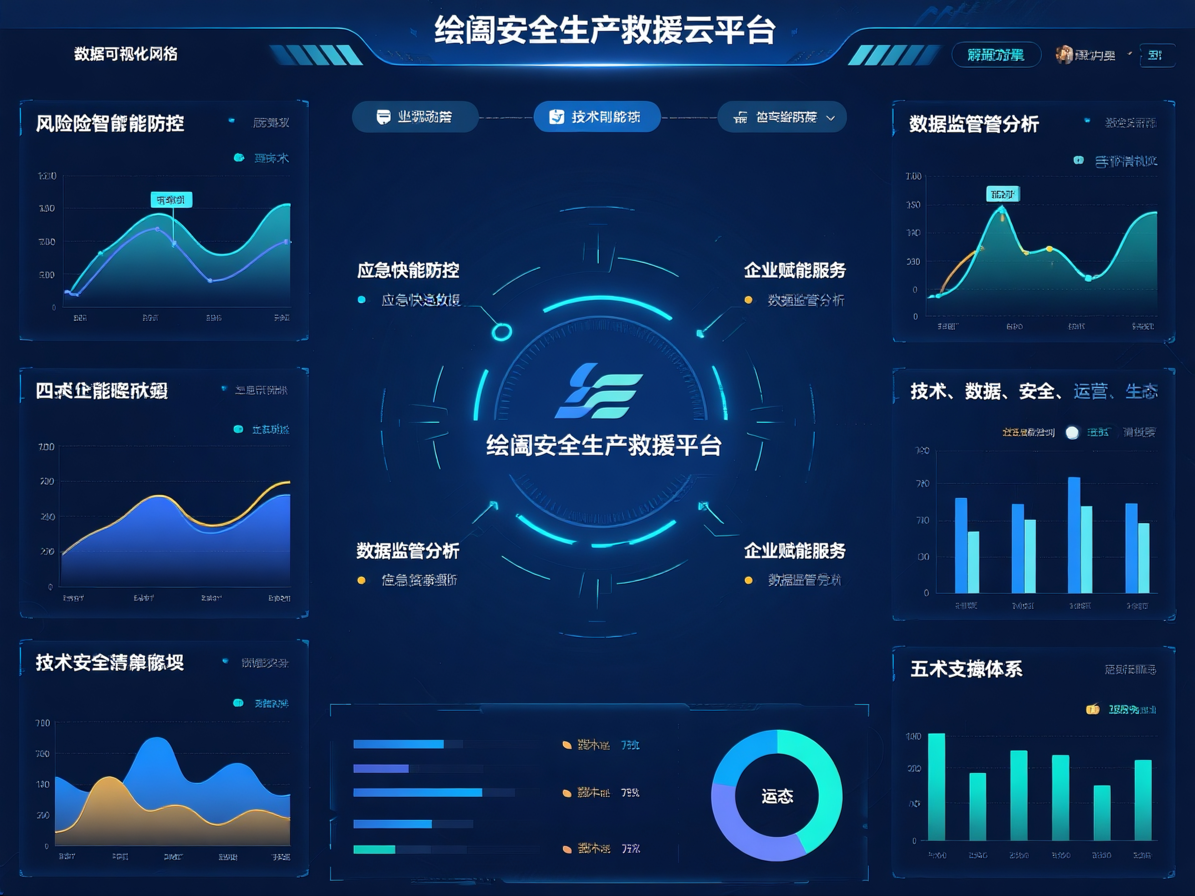 方案以 “绘阖安全生产救援云平台” 为核心中枢,联动 “风险智能防控、应急快速救援、企业赋能服务、数据监管分析” 四大功能翼,通过 “技术、数据、安全、运营、生态” 五大支撑体系,实现企业安全生产救援全场景覆盖: