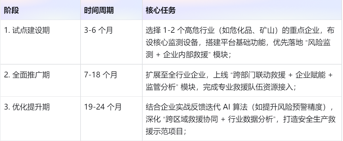 分层培训:为企业安全负责人提供 “平台操作、风险分析” 培训,为救援队伍提供 “智能救援工具使用” 培训,确保各角色熟练应用。