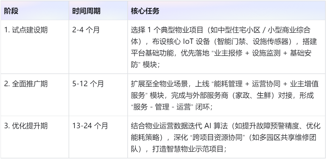 五、实施路径:分阶段落地,适配不同物业类型