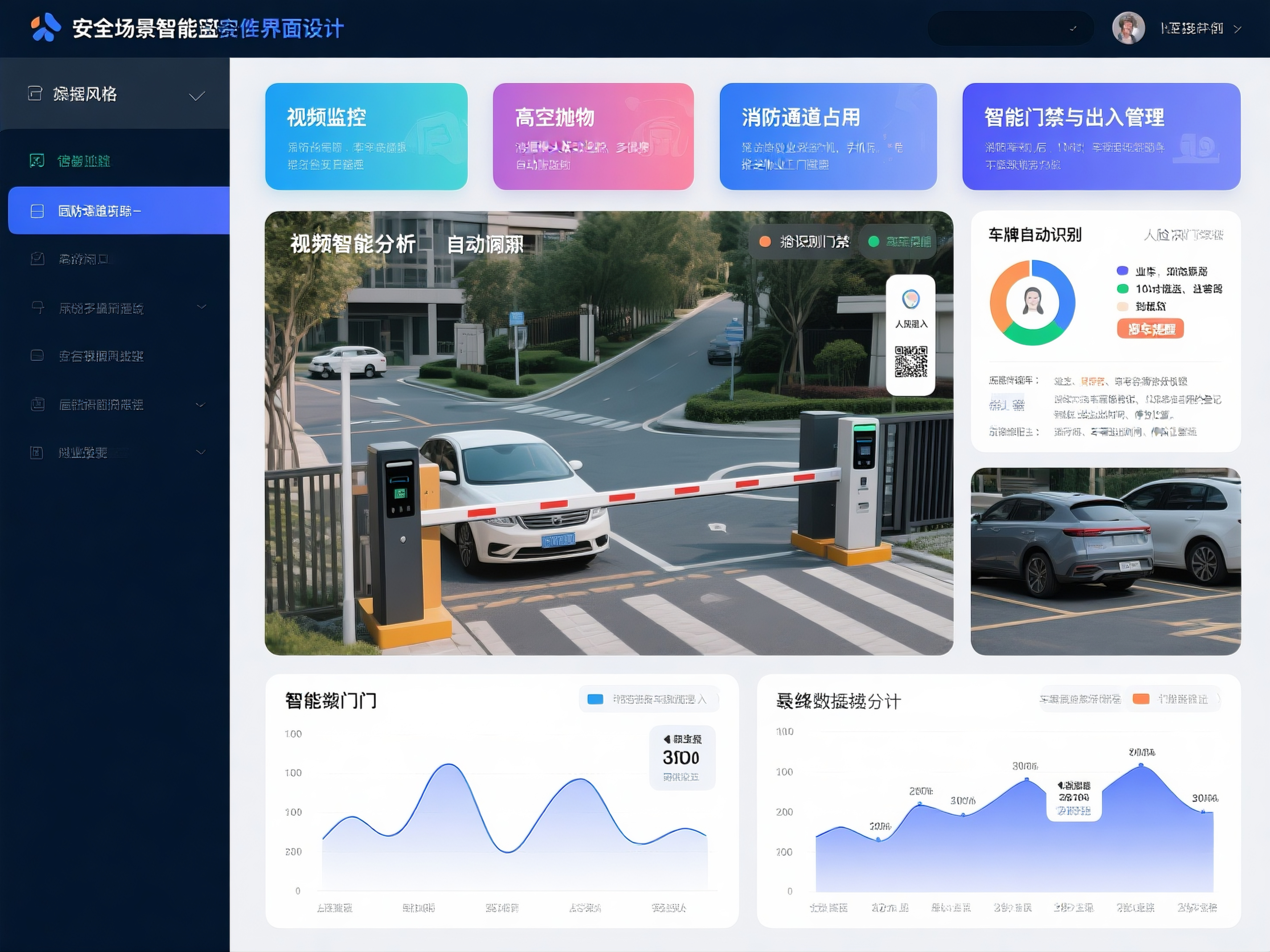 视频智能分析:园区出入口、主干道、停车场布设 “AI 高清摄像头”(星素数字科技提供图像识别技术),自动识别 “陌生人徘徊、高空抛物、车辆剐蹭、消防通道占用”: