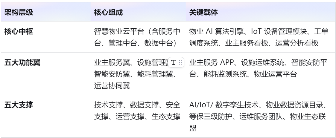二、总体架构:“一核五翼五支撑”,构建智慧物业生态