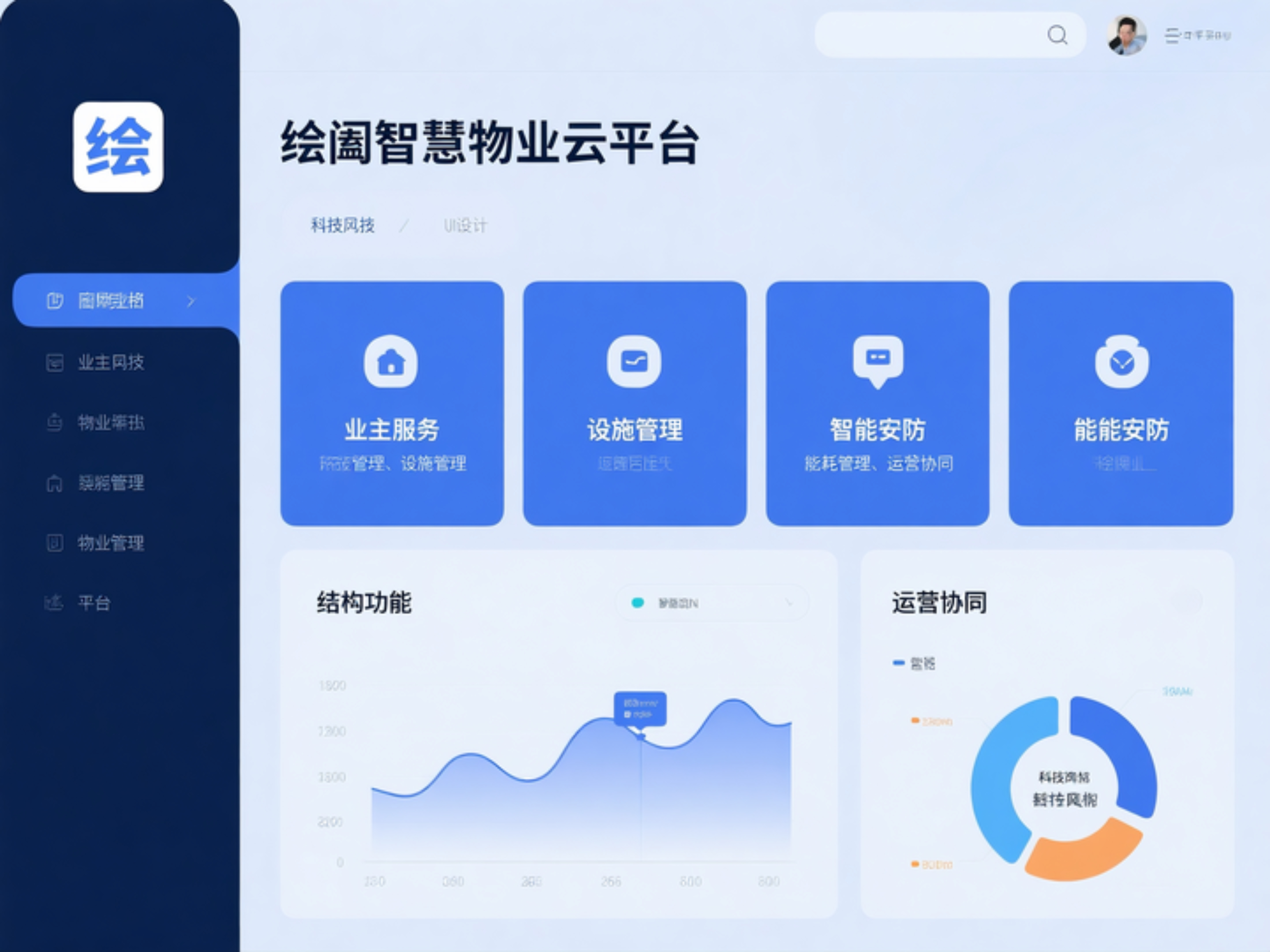 方案以 “绘阖智慧物业云平台” 为核心中枢,联动 “业主服务、设施管理、智能安防、能耗管理、运营协同” 五大功能翼,通过 “技术、数据、安全、运营、生态” 五大支撑体系,实现全物业场景数字化覆盖: