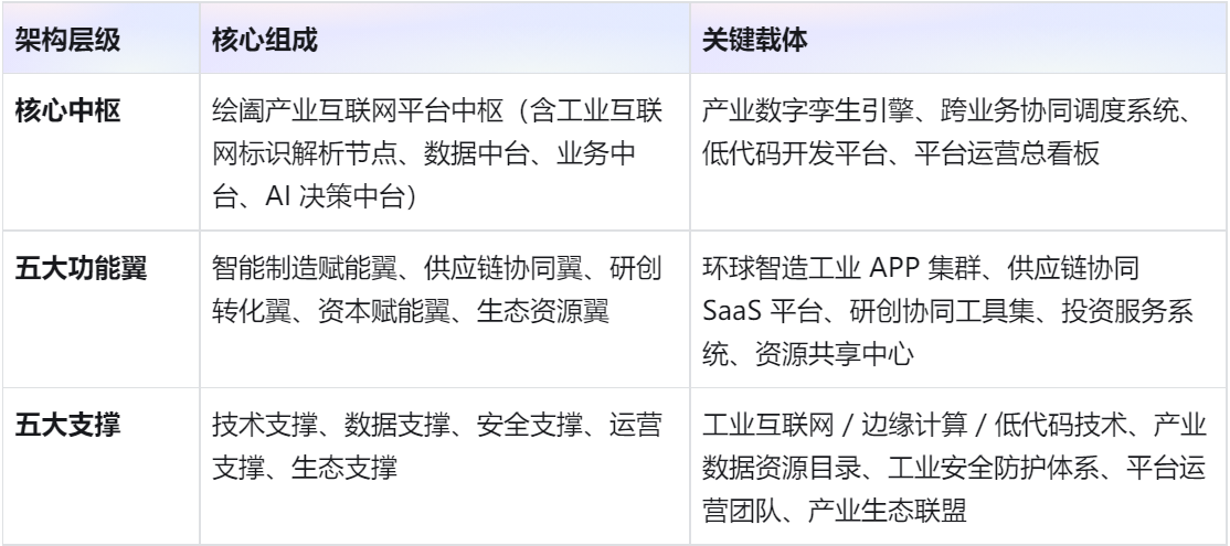 二、总体架构:“一核五翼五支撑”,构建产业互联网中枢生态