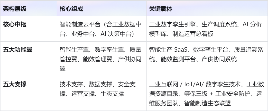 二、总体架构:“一核五翼五支撑”,构建智能制造中枢生态