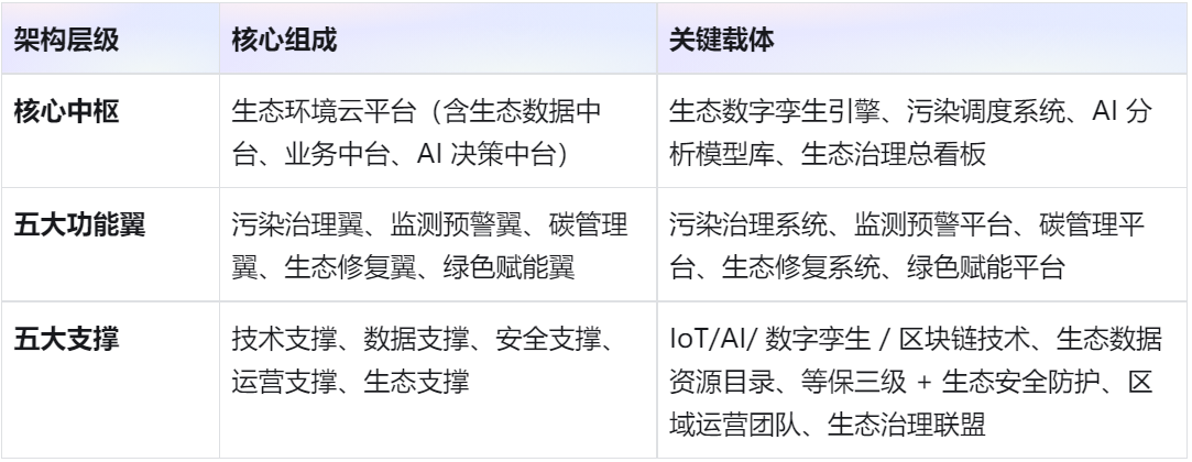 二、总体架构:“一核五翼五支撑”,构建生态环境治理中枢