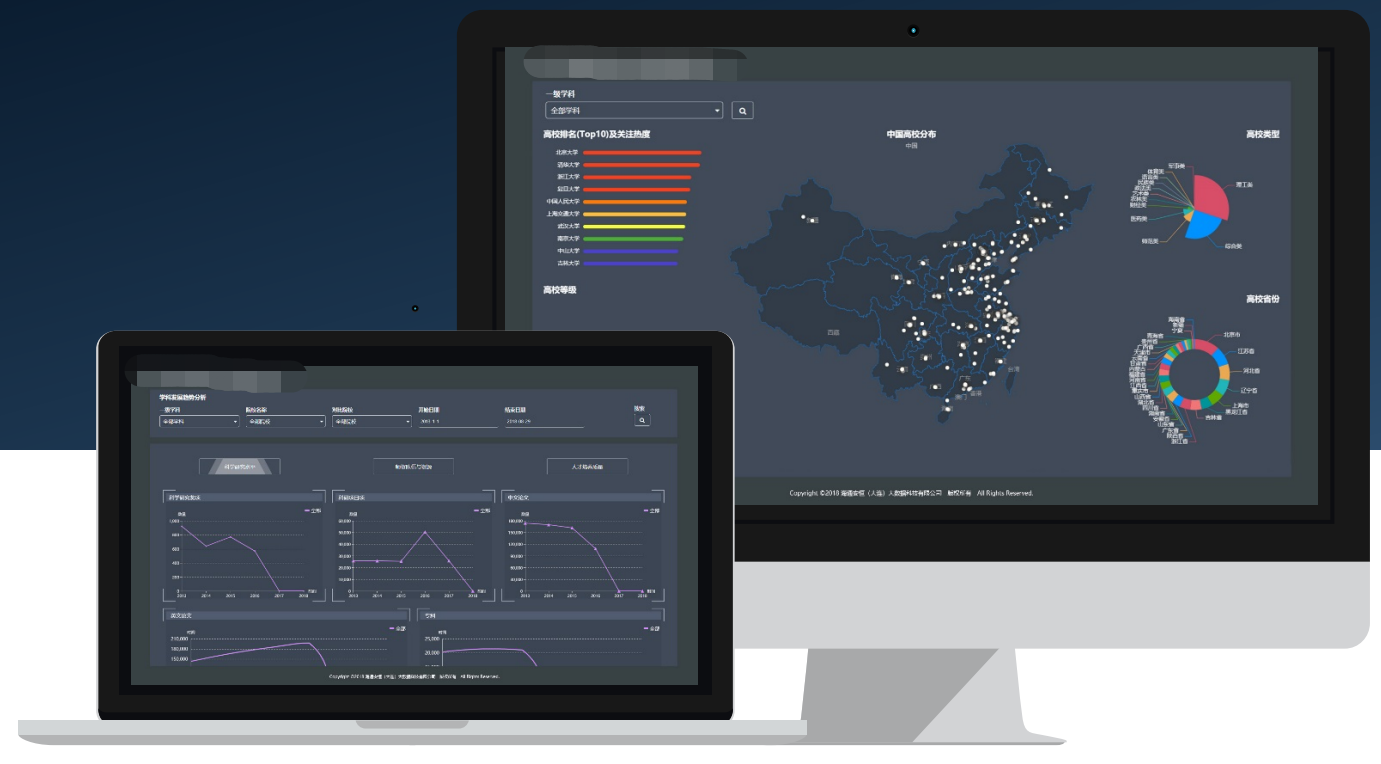 基于教学数据主题库,对⾼校学情、教情进⾏多维度分析评价,帮助⾼校平衡教育资源、优化教育管理、提升教育质量,助⼒教育模式升级创新。