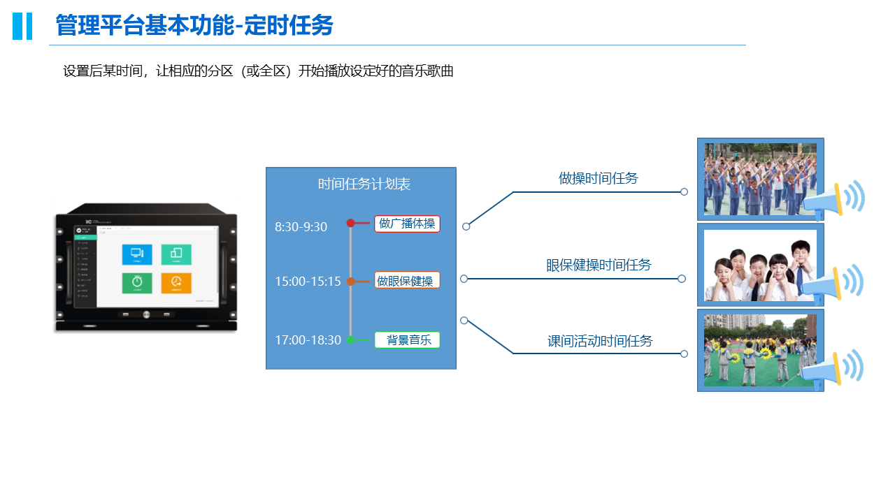 校园应急广播系统解决方案是一种用于学校内部应急事件处理、安全管理的技术方案。该方案通过校园广播系统向学生、教师、工作人员等发布应急通知、警报、提示等信息,可以有效地提高学校内部应急事件的处理效率和应对能力,保障师生的安全和稳定。
