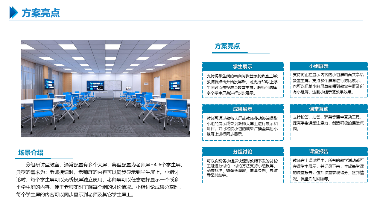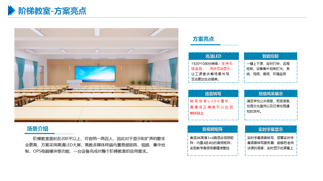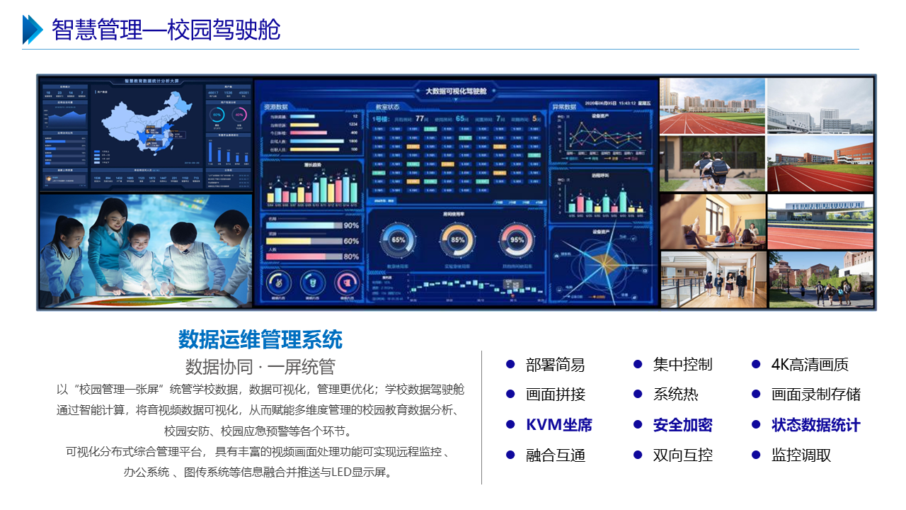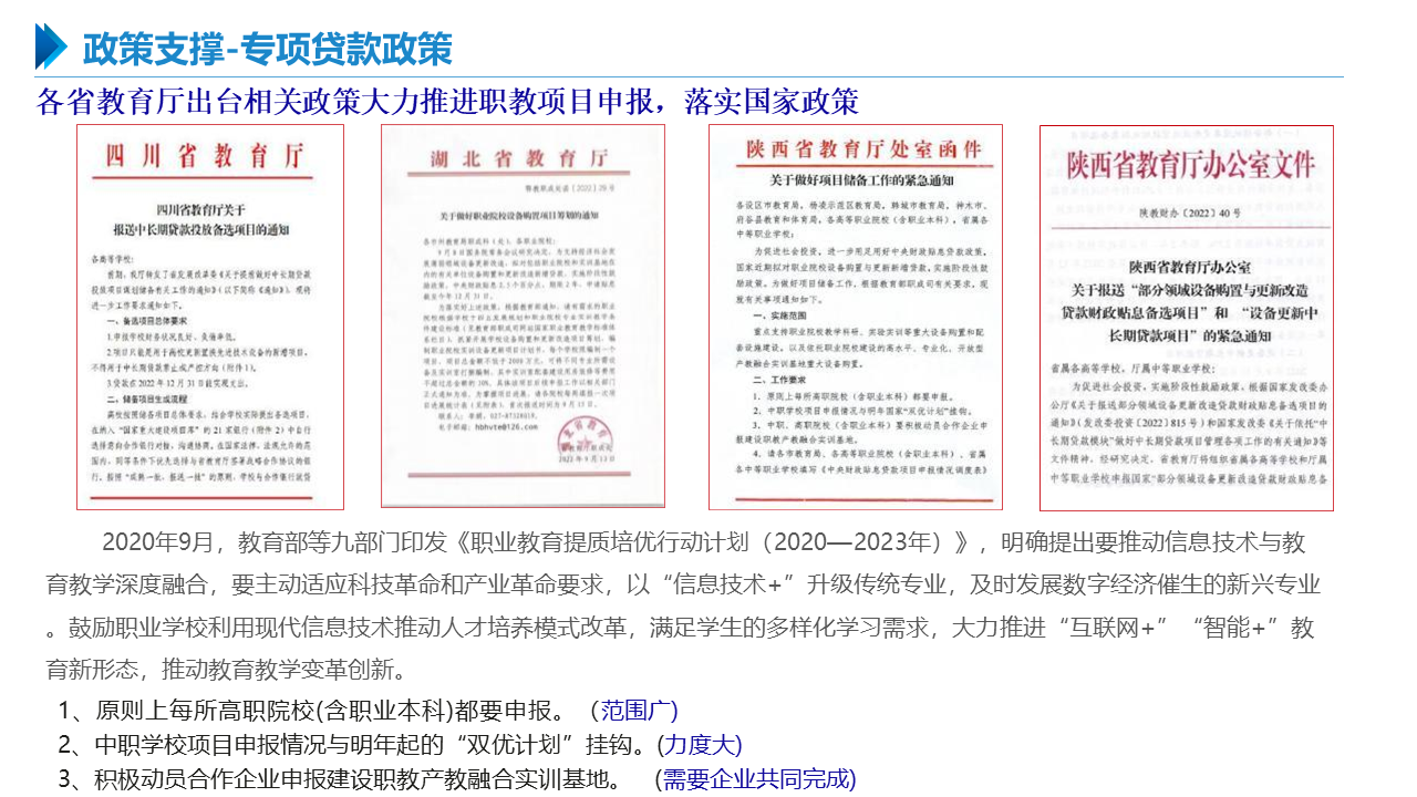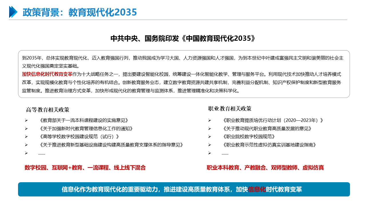智慧职教解决方案包括建设智能化校园,统筹建设一体化智能化教学、管理与服务平台。利用现代技术加快推动人才培养模式改革,实现规模化教育与个性化培养的有机结合。
