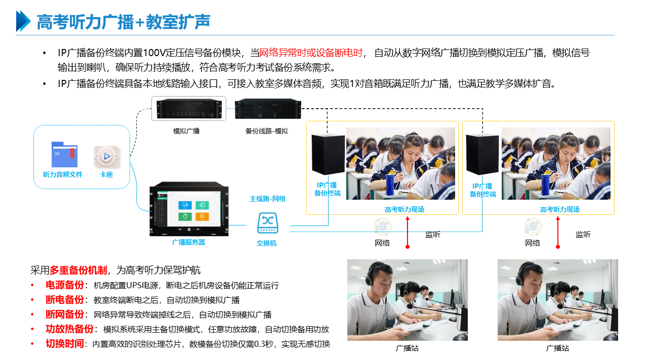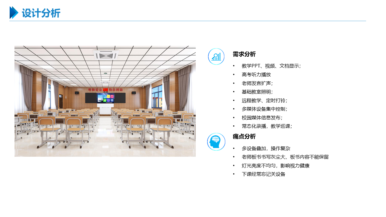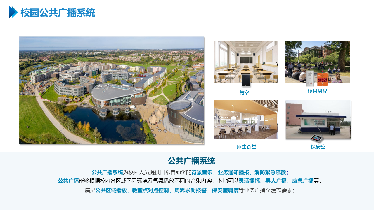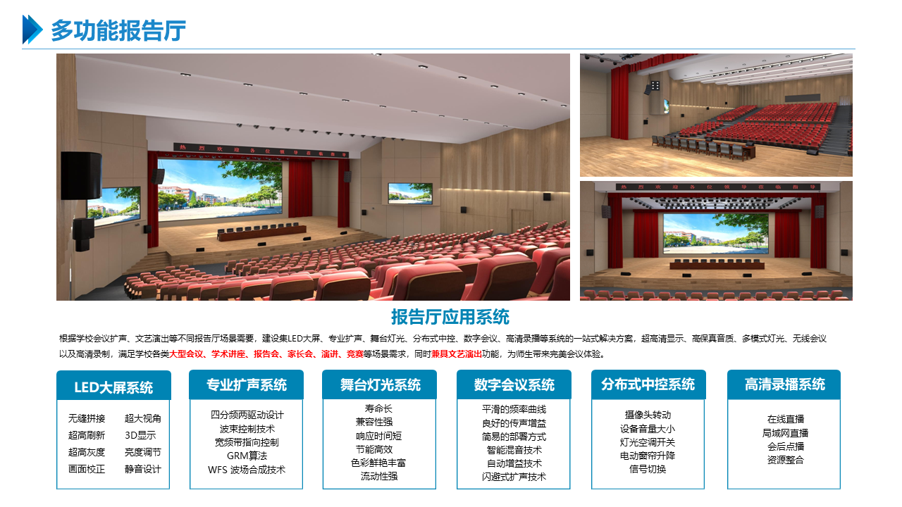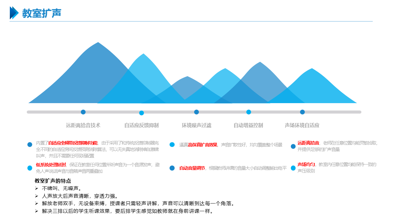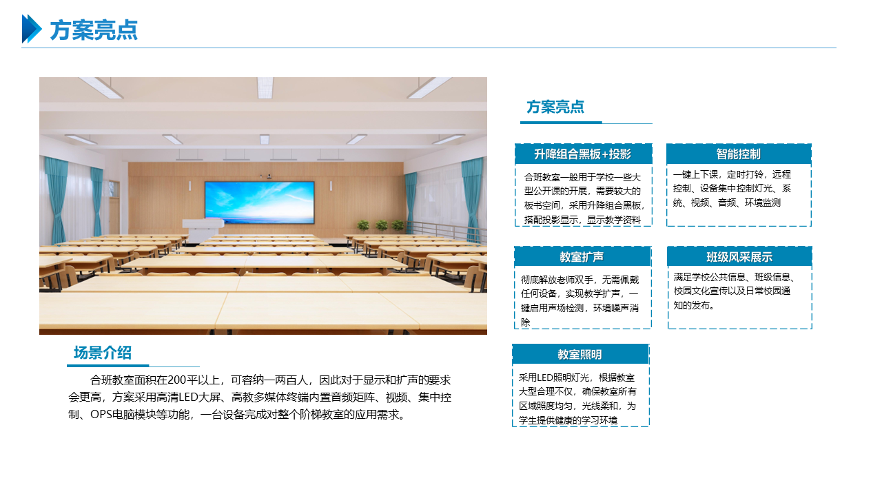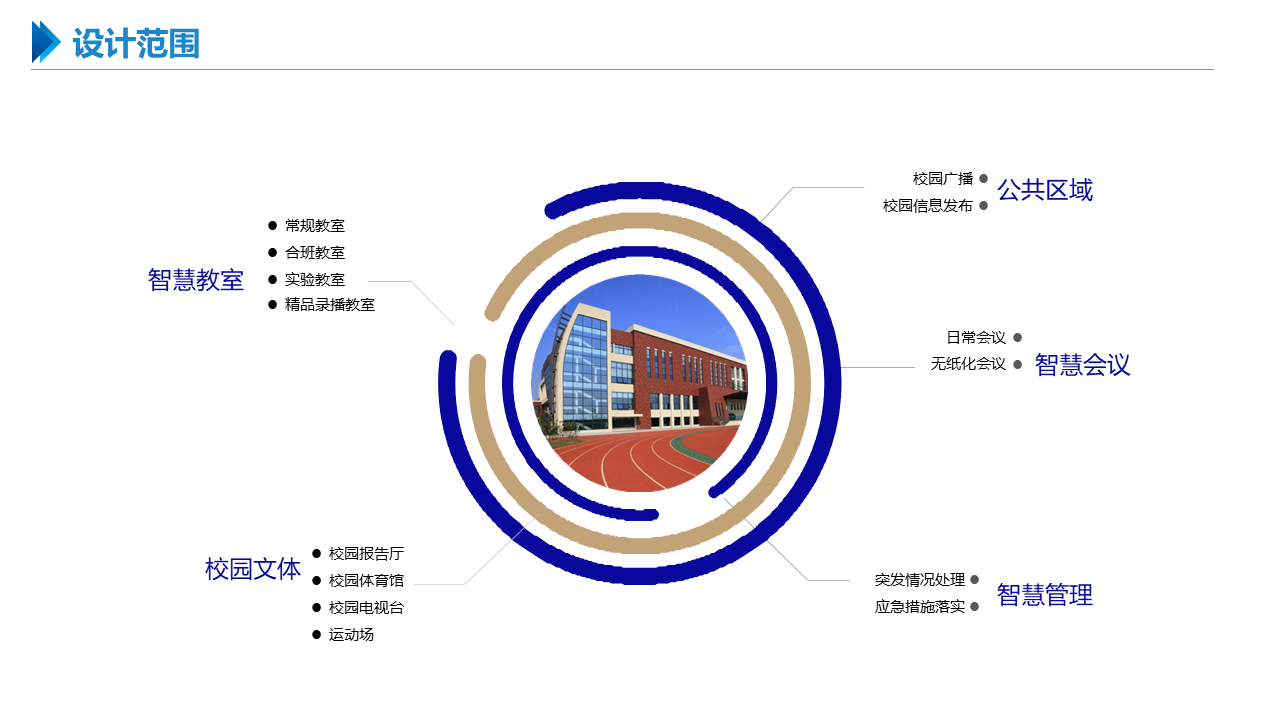 中学音视频系统解决方案采用云网一体化的模式,构建“云平台+网+端+内容+应用"五位一体的产品形态。运用5G、云计算、大数据、人工智能等先进技术,以智慧课堂和互动敦学为核心,形成以学生为主体的教育生态圈,实现信息技术与教学应用的深度融合。