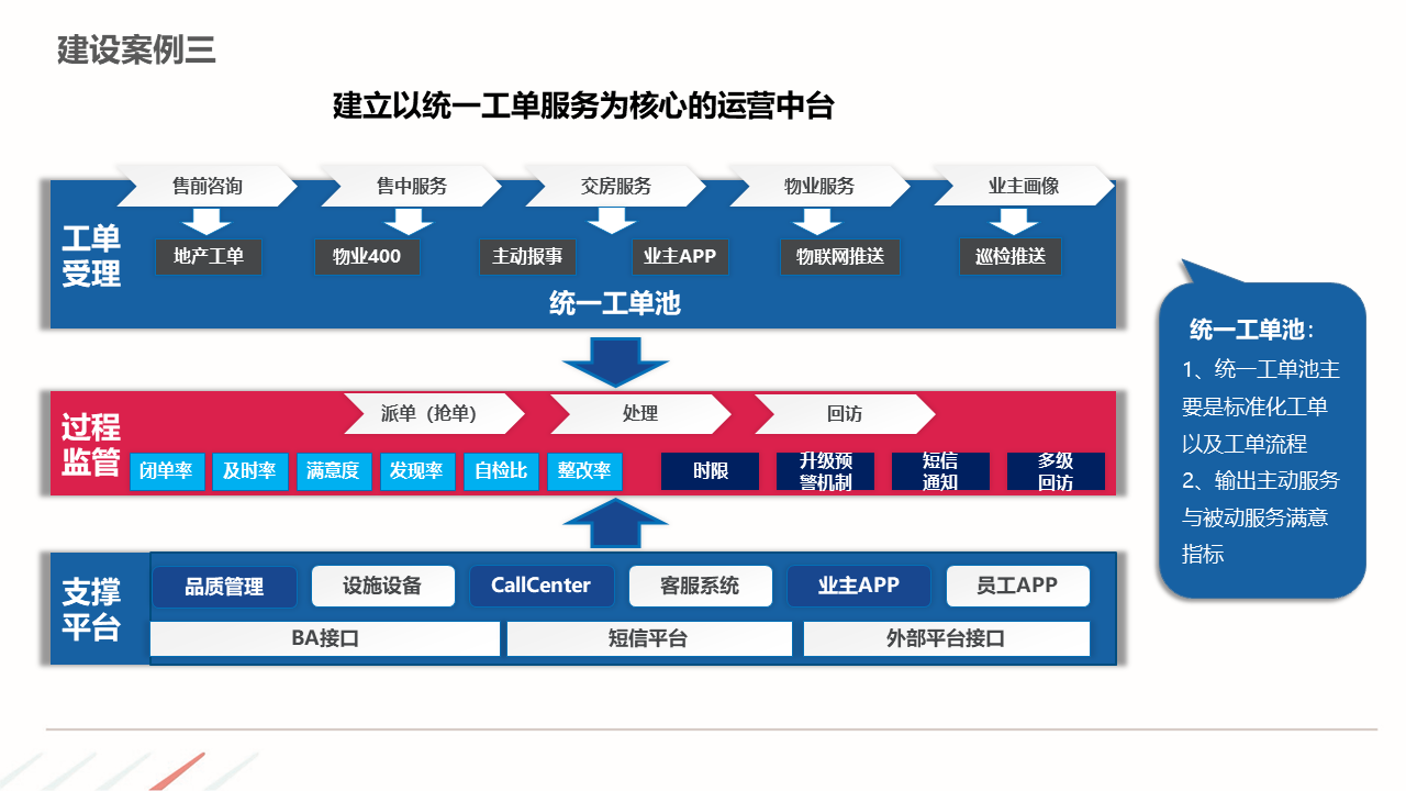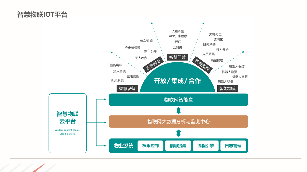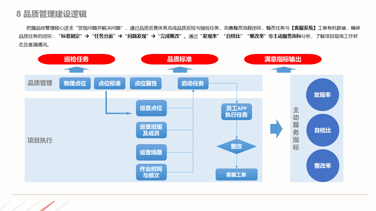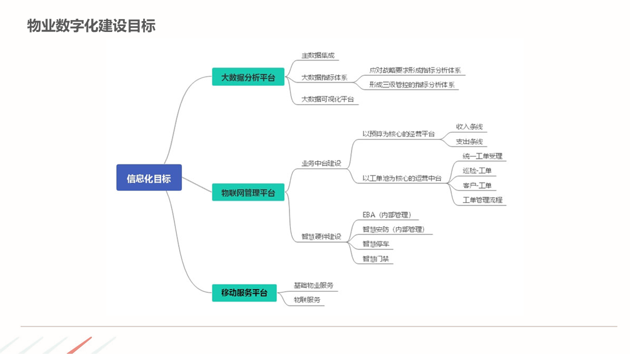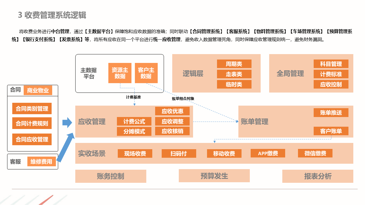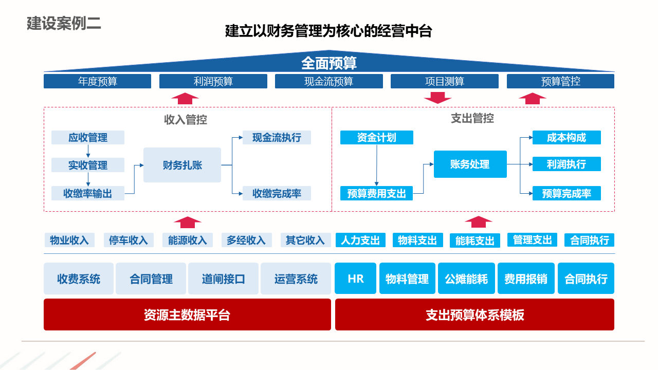 物业ERP系统一体化建设方案建立以智能化为目标的社区, 如:APP报事、400报事、智能门禁、在线缴费、智能车禁等一系列围绕客服品质与客户体验的智能化提升,基于数据基础,逐步开展多经业务,以围绕解决客户满意为基准去规划业务方向。