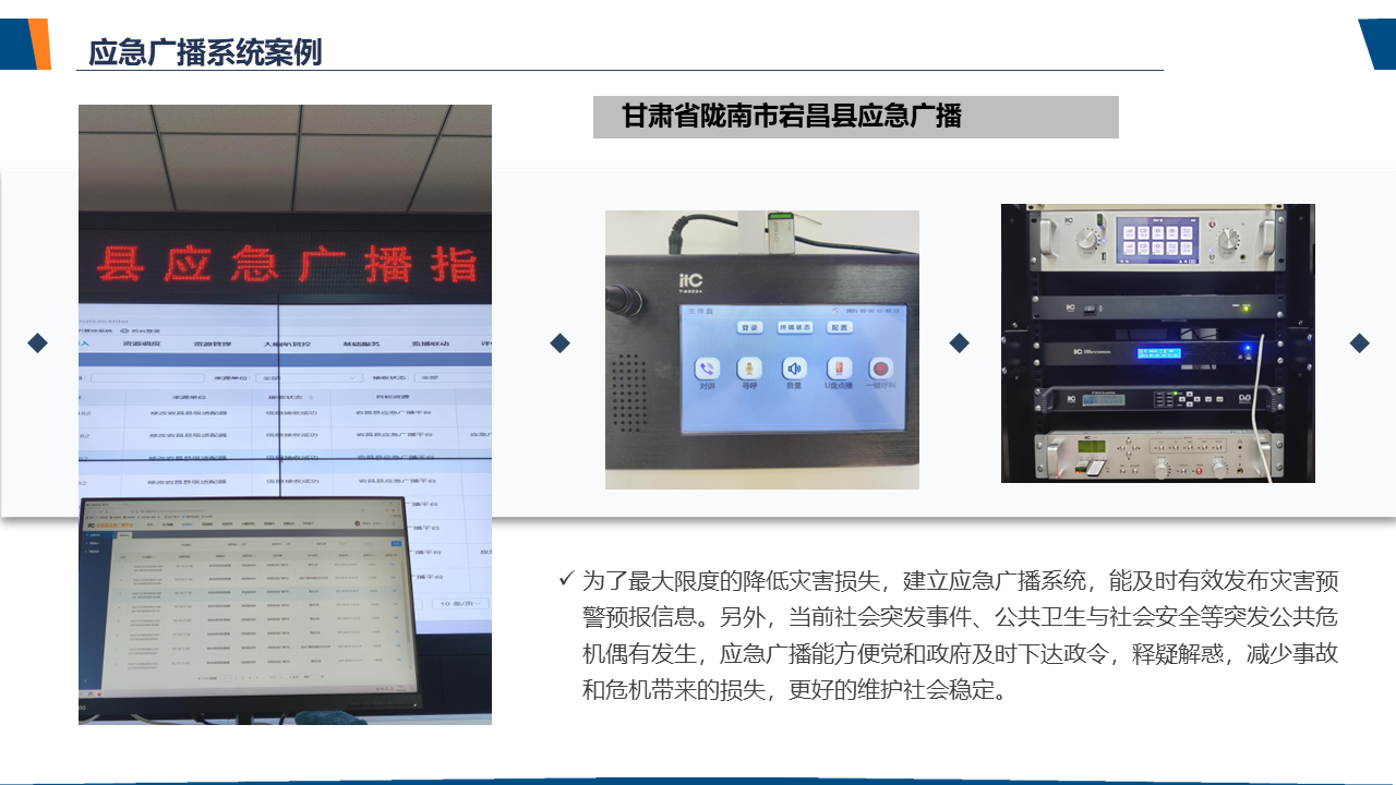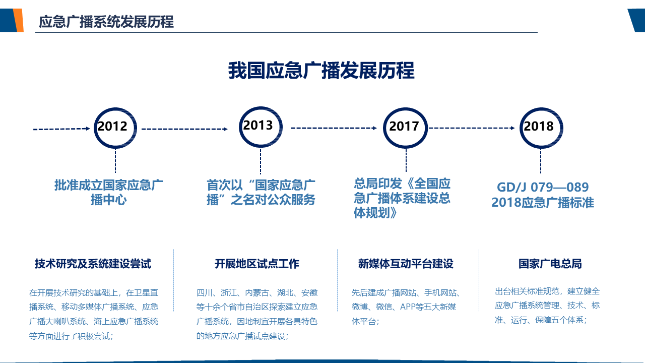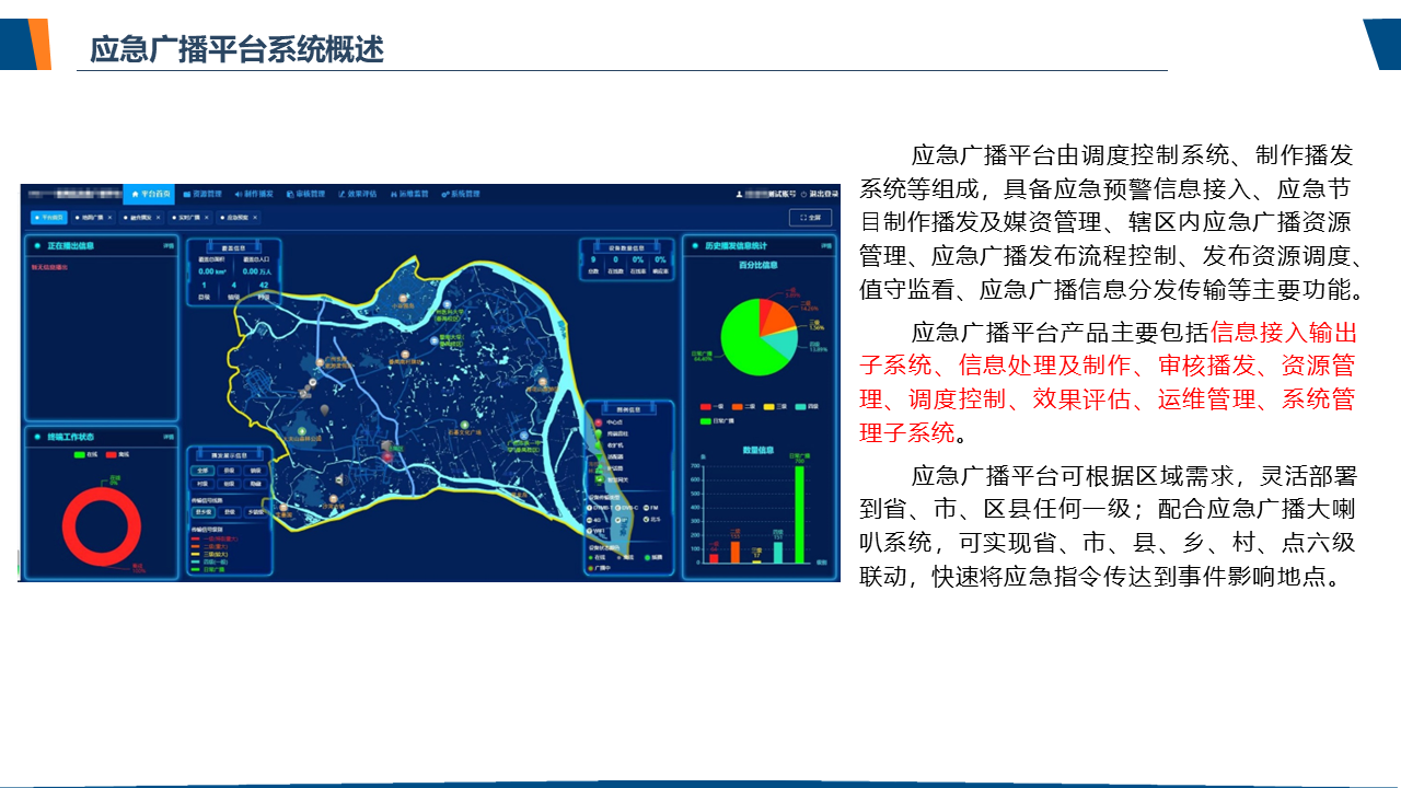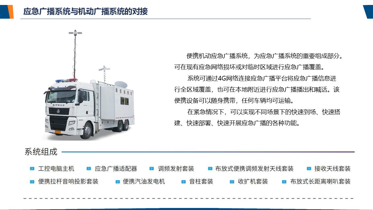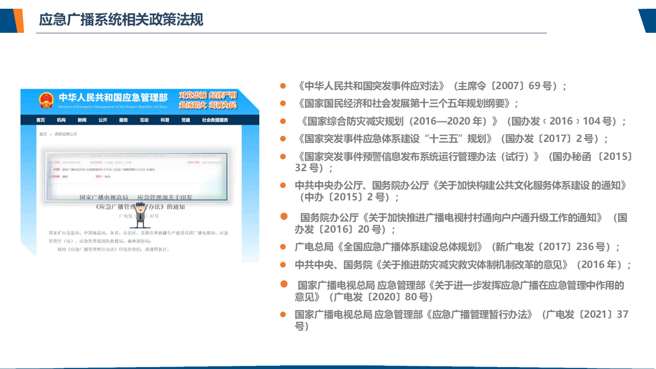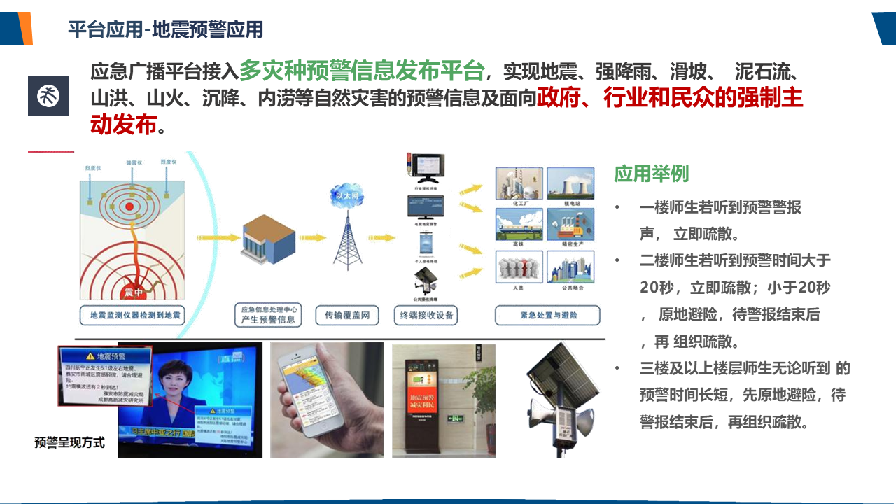 了解应急广播应急广播是一个应急信息发布系统。应急广播是利用广播电视和新媒体等方式,通过广播电视传输覆盖网和其他信息网络,向公众或特定区域、特定人群发布应急信息的传播系统,是政府及相关部门向公众提供应急信息的重要手段,是国家应急管理体系和国家公共文化服务体系的重要组成部分。