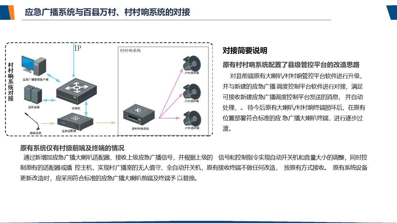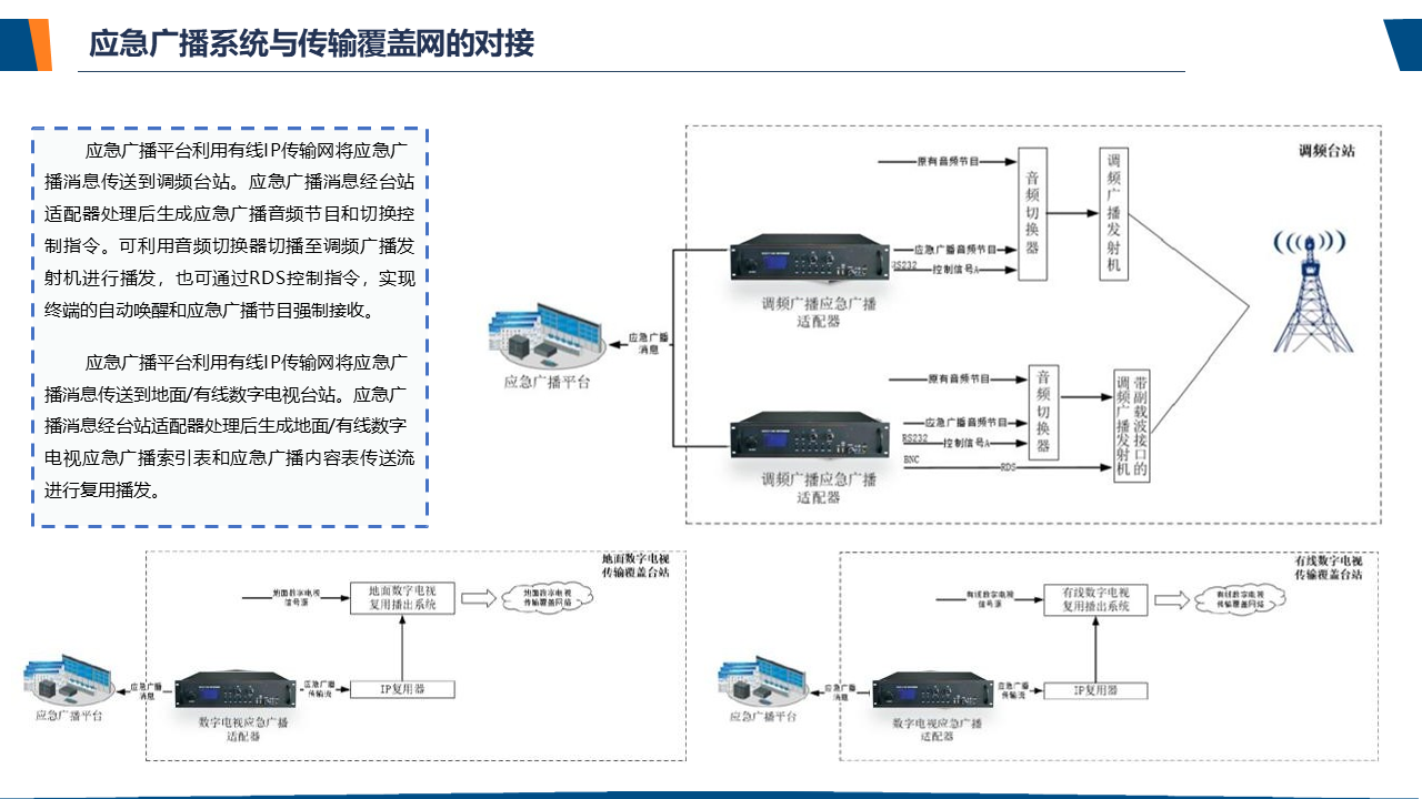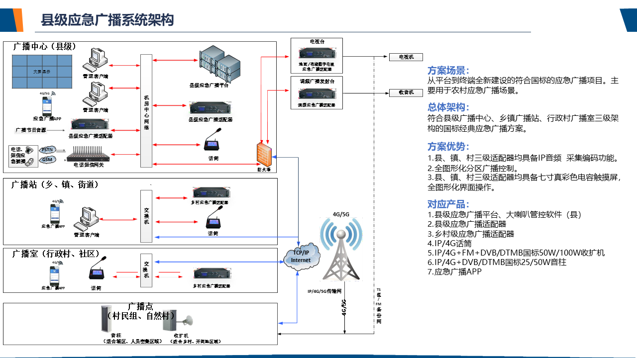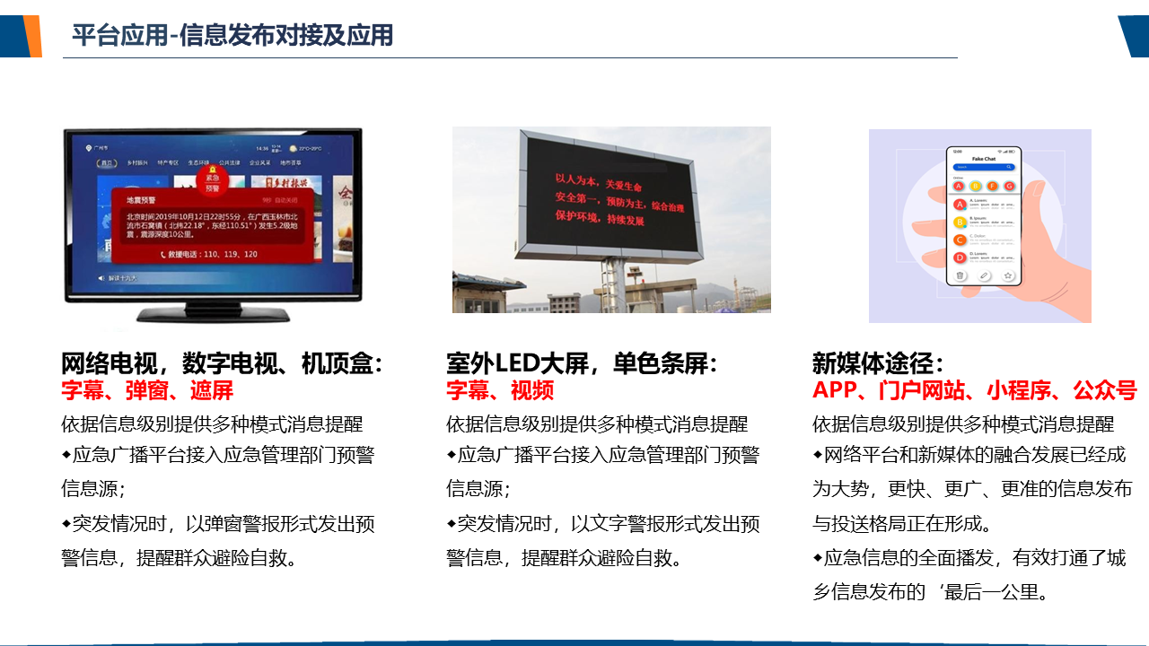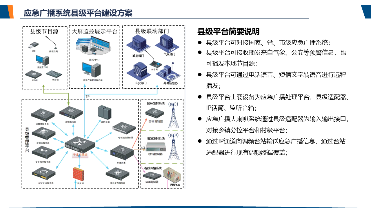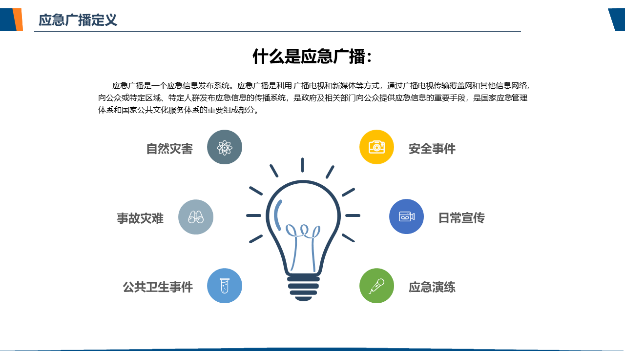 了解应急广播应急广播是一个应急信息发布系统。应急广播是利用广播电视和新媒体等方式,通过广播电视传输覆盖网和其他信息网络,向公众或特定区域、特定人群发布应急信息的传播系统,是政府及相关部门向公众提供应急信息的重要手段,是国家应急管理体系和国家公共文化服务体系的重要组成部分。