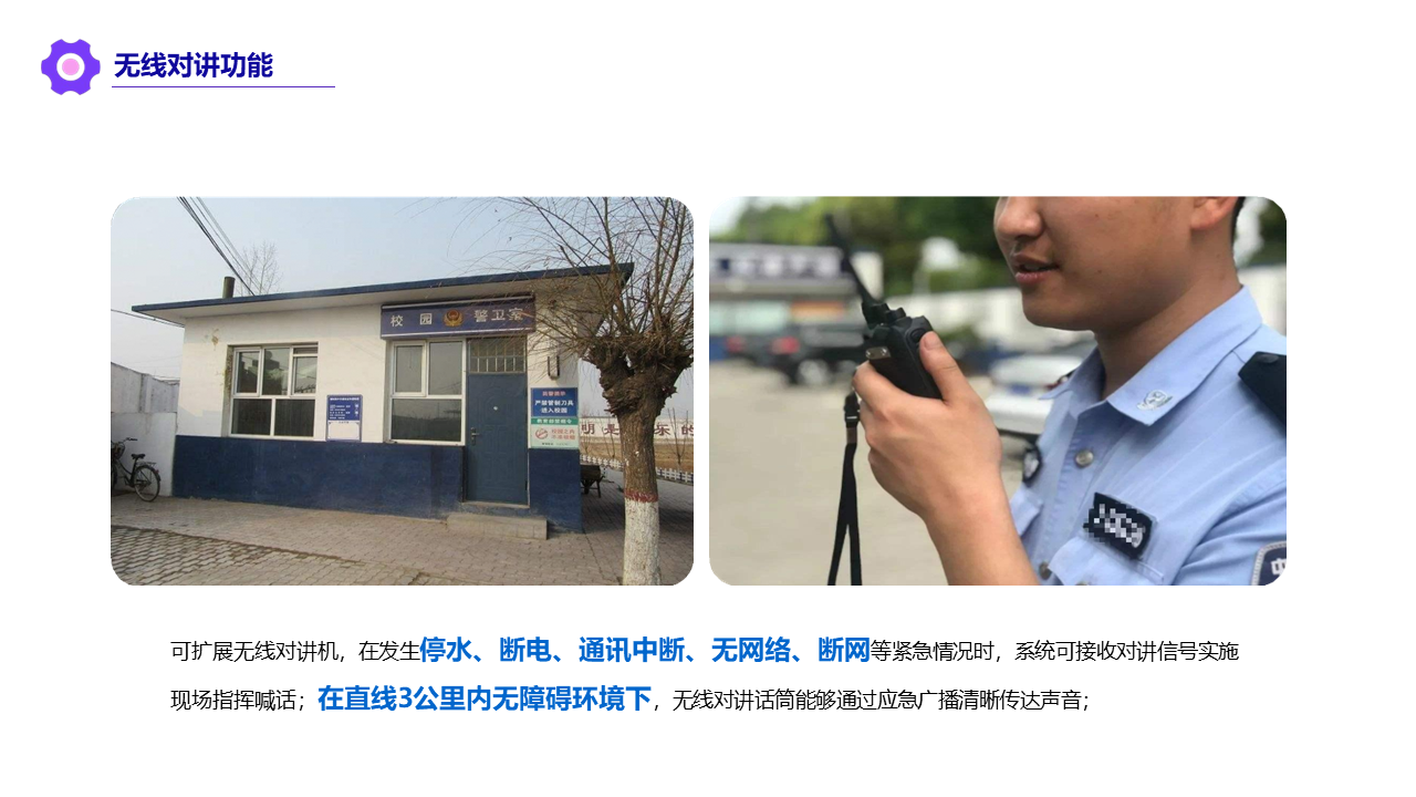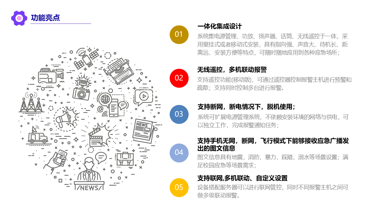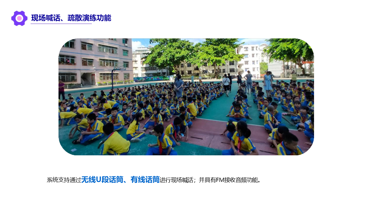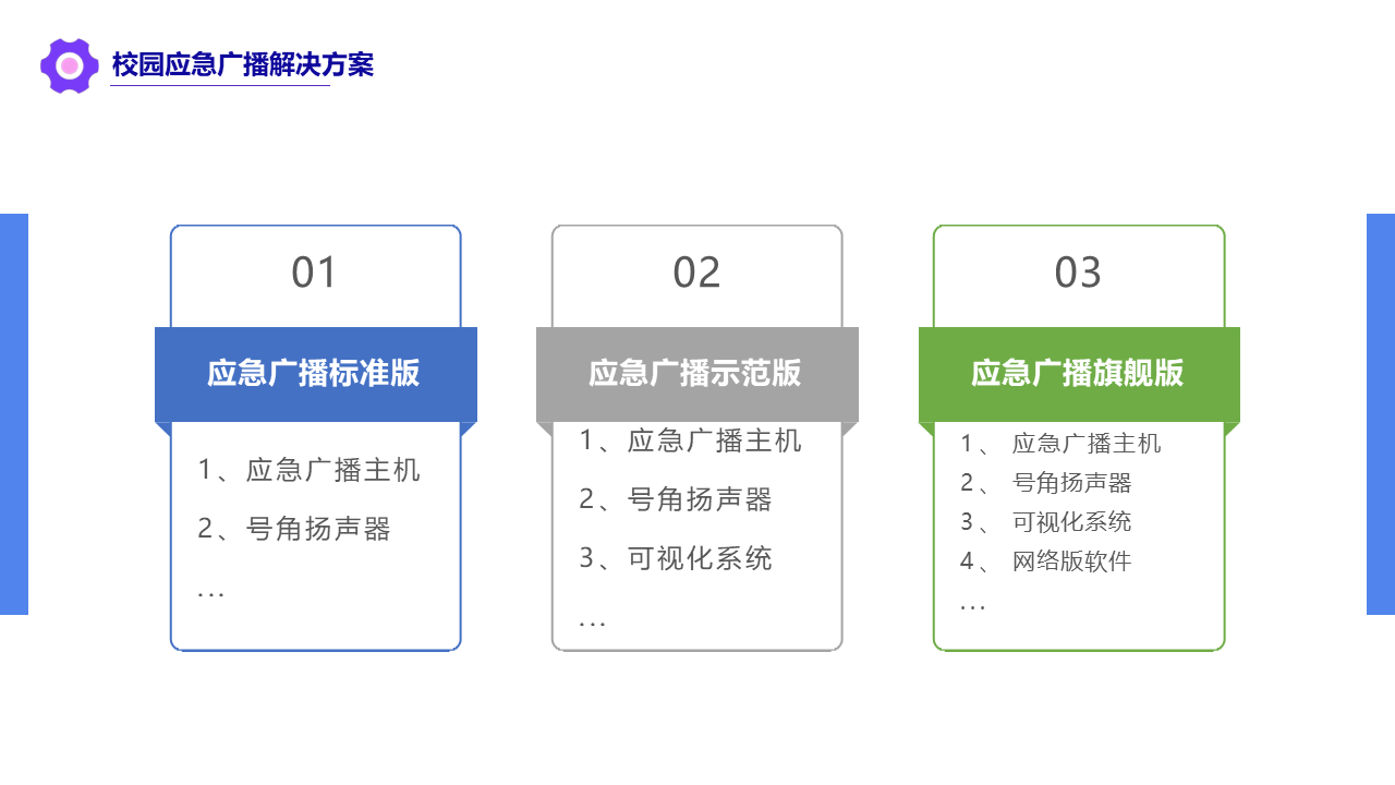 校园应急广播解决方案 积极建设校园应急广播系统,从而保障各幼儿园、小学、中学及高等院校师生的生命安全,共建平安校园。通过开展校园应急避险和安全防范疏散演练达标单位创建活动督查工作,推动全省教育系统不断优化学校突发事件应急处置流程,有效提高师生安全意识、应急避险和自救互救能力,促进校园安全管理水平整体提升。