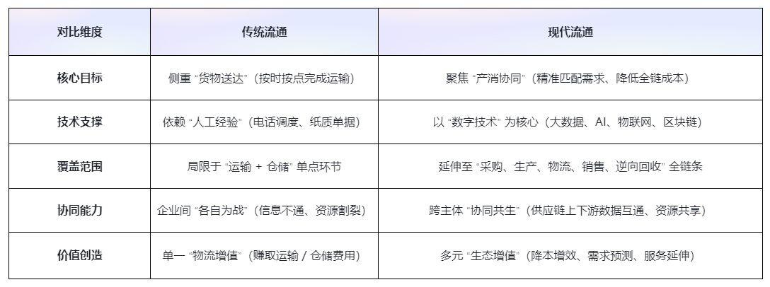 一、现代流通与传统流通的本质差异:从 “单点低效” 到 “系统高效”