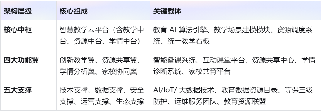 二、总体架构:“一核四翼五支撑”,构建智慧教学生态