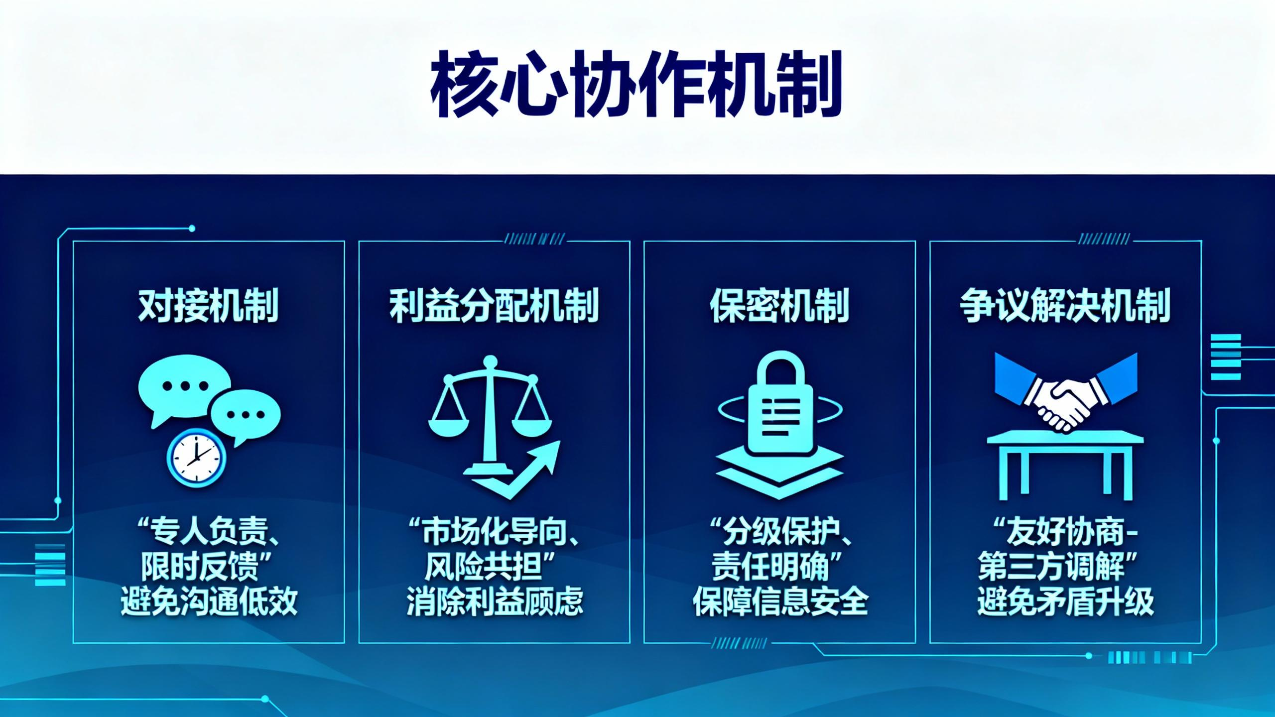 反馈时限:平台收到参与方需求后,1个工作日内响应,2-3个工作日内提供初步匹配结果;合作过程中,对接人需每周同步1次进展,重大问题24小时内沟通解决;