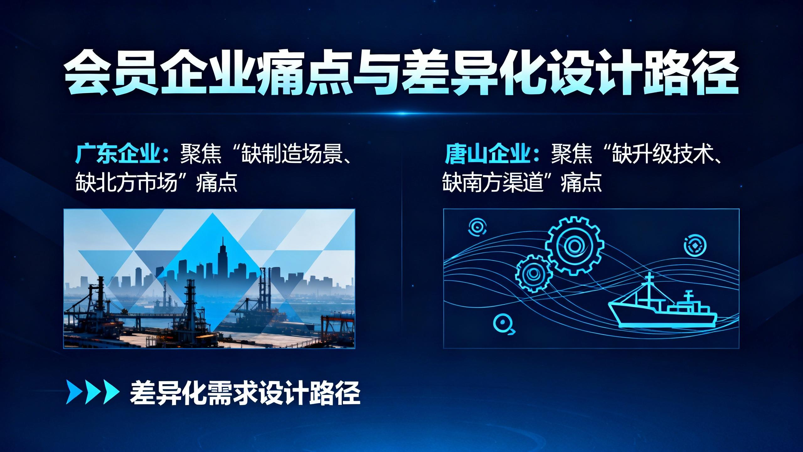 会员企业是平台的核心服务对象,需按 “广东企业、唐山企业” 的差异化需求拆解价值,避免 “一刀切” 的泛化赋能。
